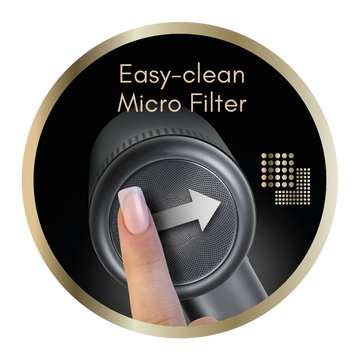 - 3 stage Diva micro-filter removes damaging impurities from the dryer and hair